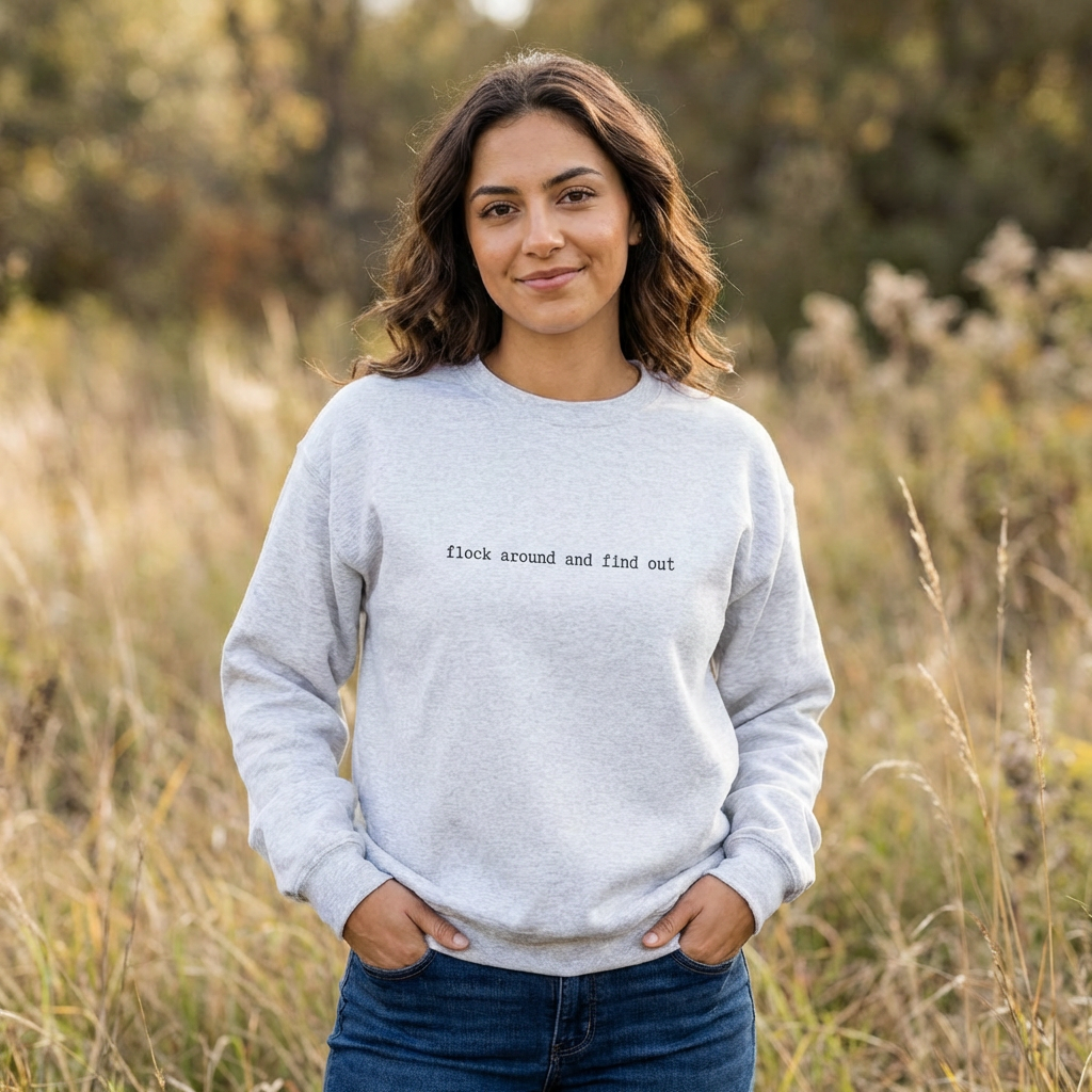 Soft, understated, and quietly confident — this crewneck settles into your routine like an old friend. The clean white canvas and minimal embroidered text across the chest read like a private note: low-key, thoughtful, and a little wry. It wears roomy but neat, with a classic crew neckline and ribbed cuffs that hold their shape through mornings spent with coffee and afternoons of slow work. Durable double-needle stitching and a medium-heavy 50/50 cotton-poly blend give it substance without weight. Choose an embroidered placement that feels like you — small left-chest for subtlety, centered for gentle declaration, or larger center for more presence. This sweatshirt belongs to people who value quiet design, honest materials, and pieces that move with them through everyday moments.